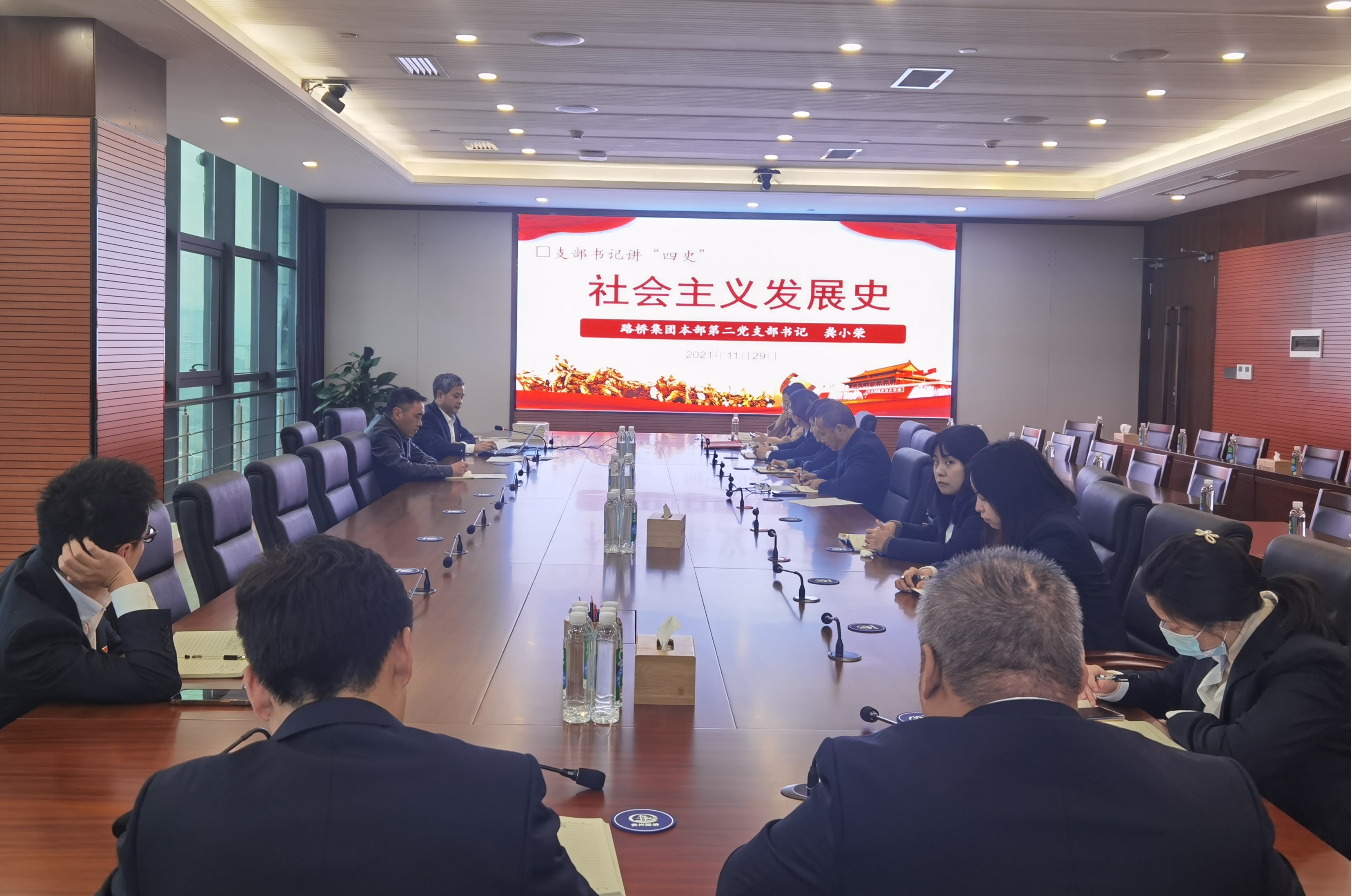 为进一步搞好支部建设,充分发挥本部党建走前列、做表率作用,结合党史学习教育相关要求,路桥本部二支部于2021年11月29日在集团公司1309会议室开展“学四史 守初心 担使命”主题党日活动暨召开第四季度党员大会。集团公司党委副书记、副董事长、总经理杜文昌,党委委员、董事、副总经理赵渝以普通党员身份参加活动,会议由支部书记龚小荣主持。