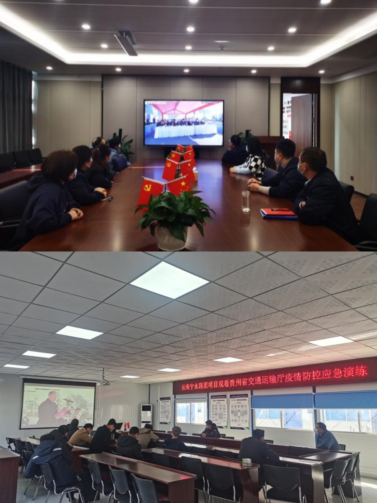 为强化预防和控制新冠肺炎疫情能力,指导和规范疫情应急处置工作,12月22日,路面分公司及司属各项目采取集中观摩及自行观摩等方式,组织100余名干部职工观看了贵州省交通运输行业疫情防控应急演练直播。