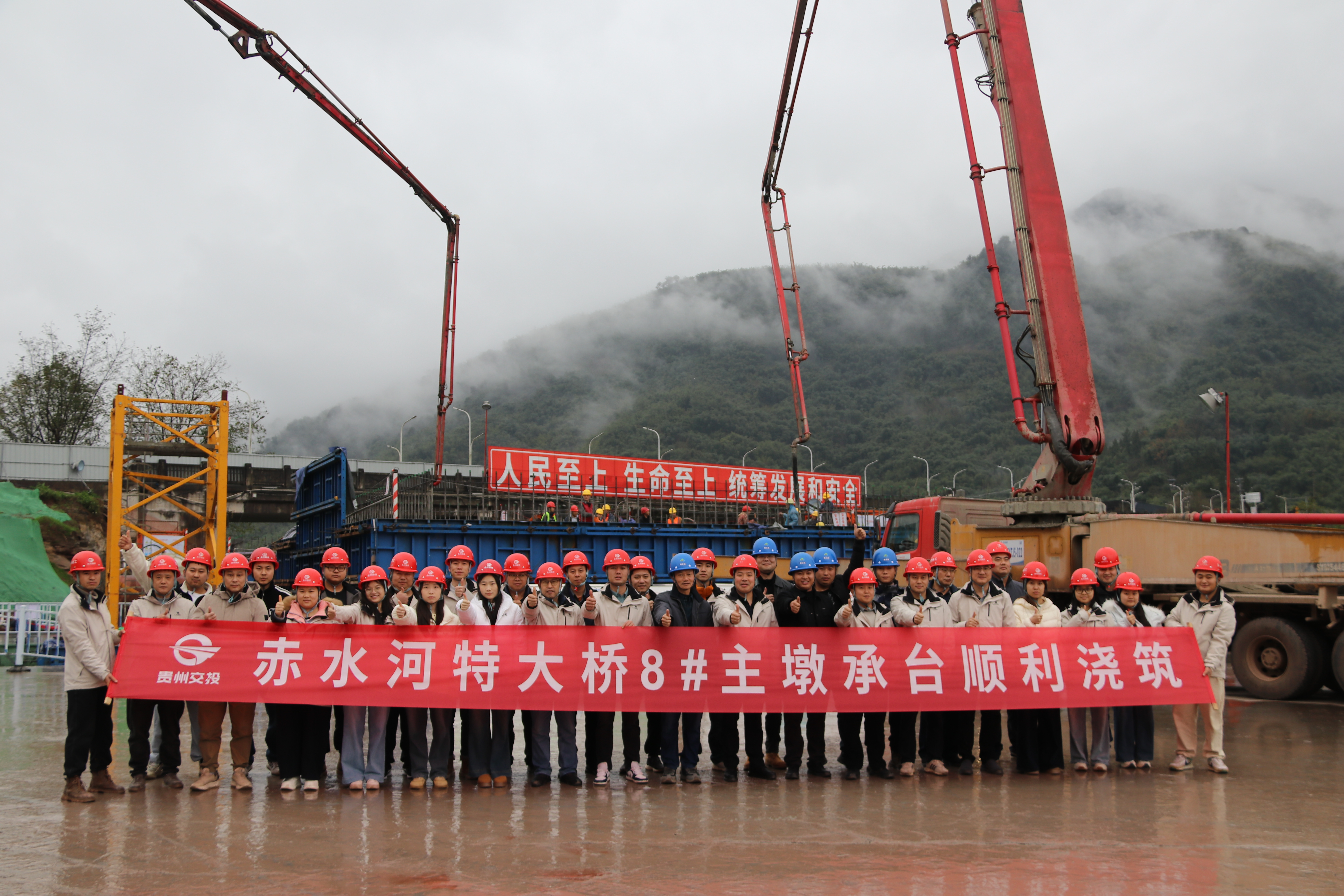 近日,渝赤叙5标复兴赤水河特大桥8#主墩承台及系梁成功浇筑完成,为这座串联黔、川、渝三省市的重要桥梁工程筑牢了坚实基础。复兴赤水河特大桥位于赤水市复兴镇,全长535.8米,采用6x40米T梁+2x30米T梁+主跨200米的下承式钢管混凝土系杆拱桥+1x18米钢筋混凝土现浇箱梁的组合结构,跨越赤水河核