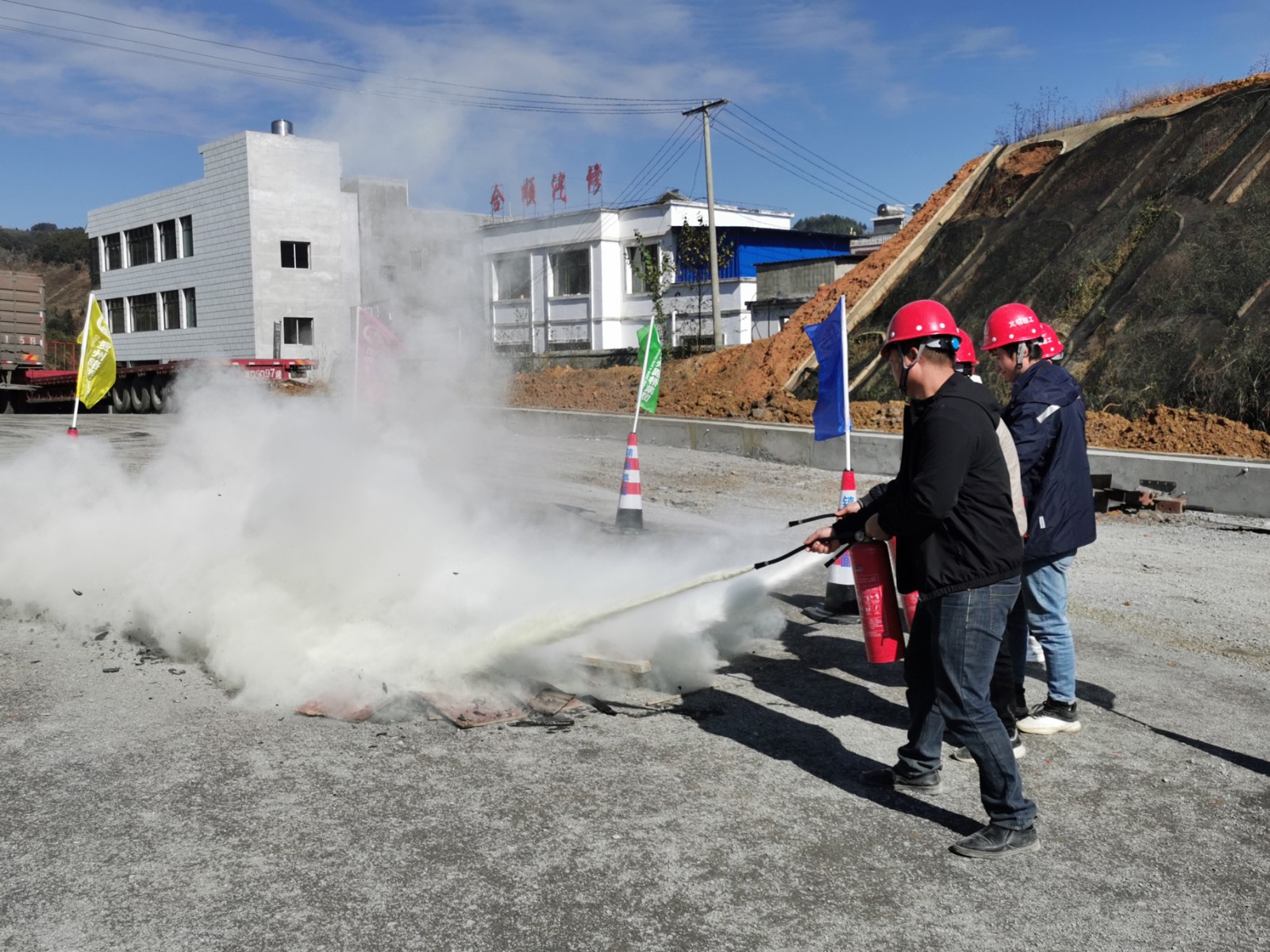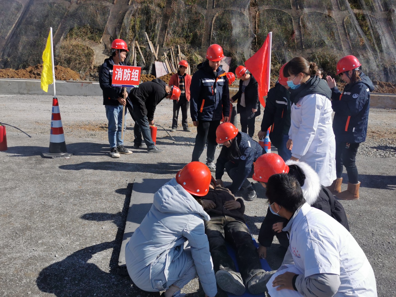 镇赫房建、路面项目安全员接到宿舍突发火情报告后,第一时间启动了应急预案,并上报值班领导。在统一指挥下,室内人员快速有序撤离。根据演练方案,各岗位工作人员有条不紊地完成了火情报警、启动应急预案、拉警戒线、医疗抢救、现场灭火等各个环节的演练内容,活动达到了预期的效果。